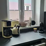 تشتمل مرافق الخدمة الذاتية على المطبخ المجهز بالكامل مع الغلاية الكهربائية وماكينة القهوة والشاي وأدوات المطبخ.